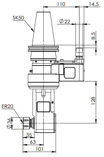 ◎?SK50-ER20 90° Angle Head-Longer (AHD Type)