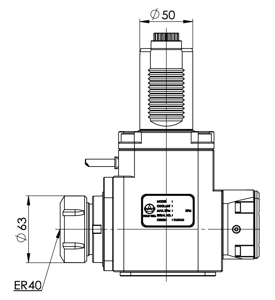 VDI50-5480-ER40 Radial Driven Tool Holder_Int. 92mm